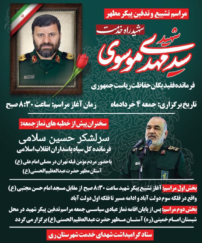 سخنران پیش از خطبه های نمازجمعه این هفته شهرری سردار سلامی فرمانده کل سپاه پاسداران انقلاب اسلامی