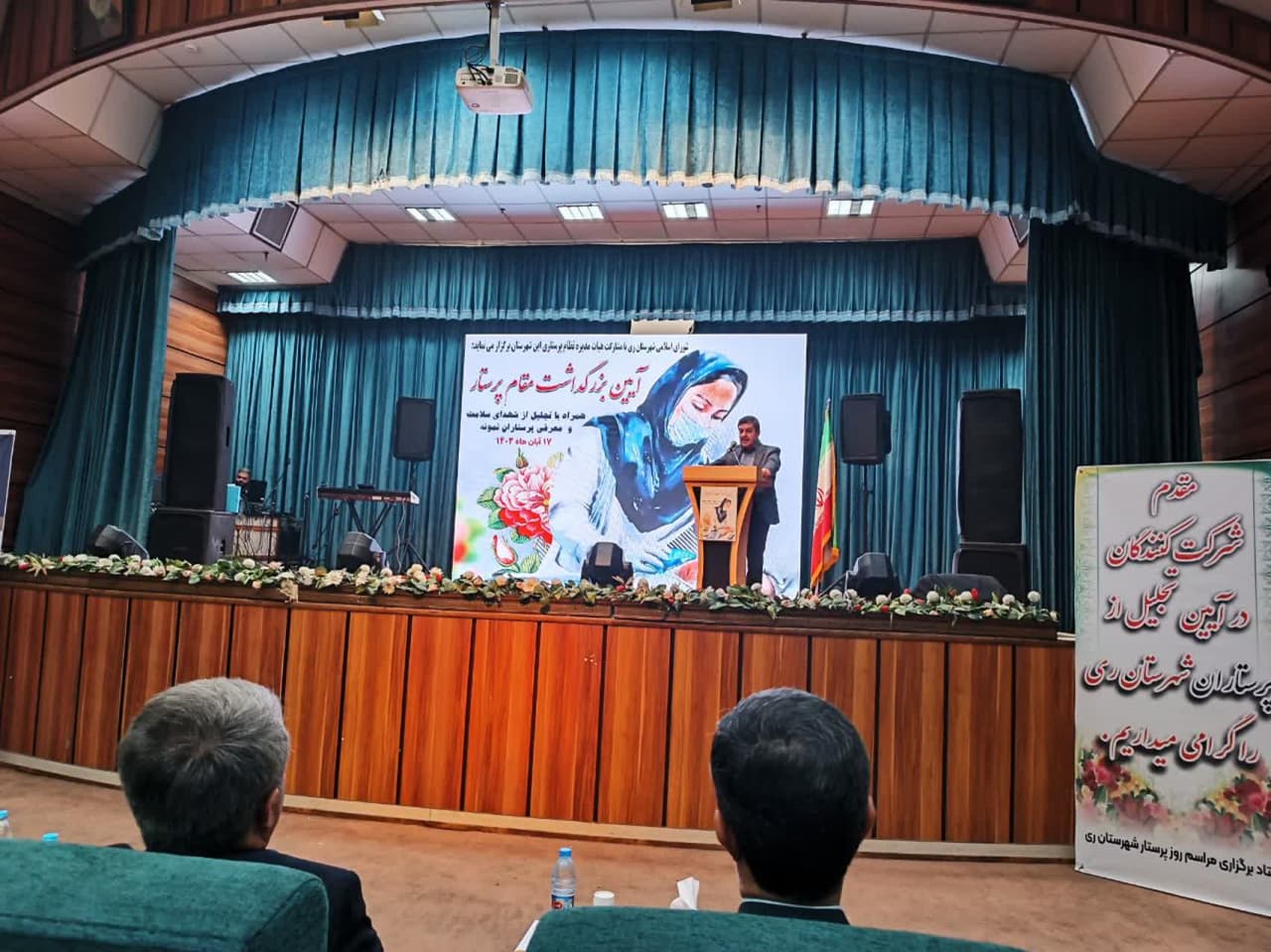 در این مراسم که باحضور حبیبی معاون وزیر بهداشت، درمان و آموزش پزشکی، باب الحوائجی معاون استاندار تهران و فرماندار ویژه شهرستان ری، یزدیخواه نماینده مردم در مجلس شورای اسلامی، سروری عضو شورای اسلامی شهر تهران، ری و تجریش، سرهنگ قنبری فرمانده ناحیه مقاومت حضرت عبدالعظیم «ع»، نصرالله مدیرکل بنیاد شهید و امور ایثارگران شهرستان های استان تهران، بخشداران، شهرداران، اعضای شوراهای اسلامی بخش ها و شهرهای تابعه، مدیران نظام سلامت و شبکه بهداشت و درمان و جمعی از پرستاران شاغل در بیمارستان ها و مجموعه های درمانی شهرستان ری برگزار شد، ضمن گرامیداشت یاد و خاطره شهدای والامقام عرصه سلامت باحضور مسئولین از پرستاران نمونه شهرستان ری تجلیل بعمل آمد.