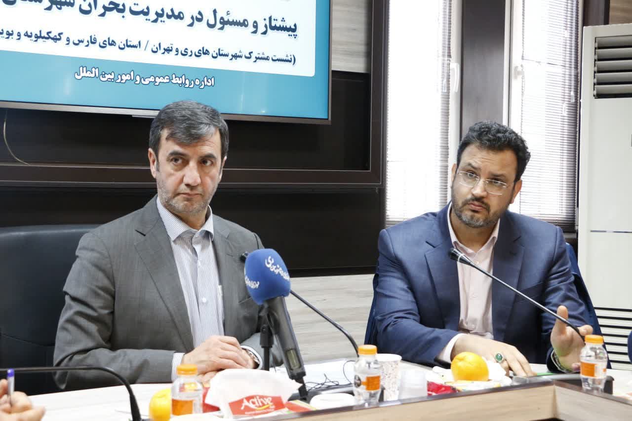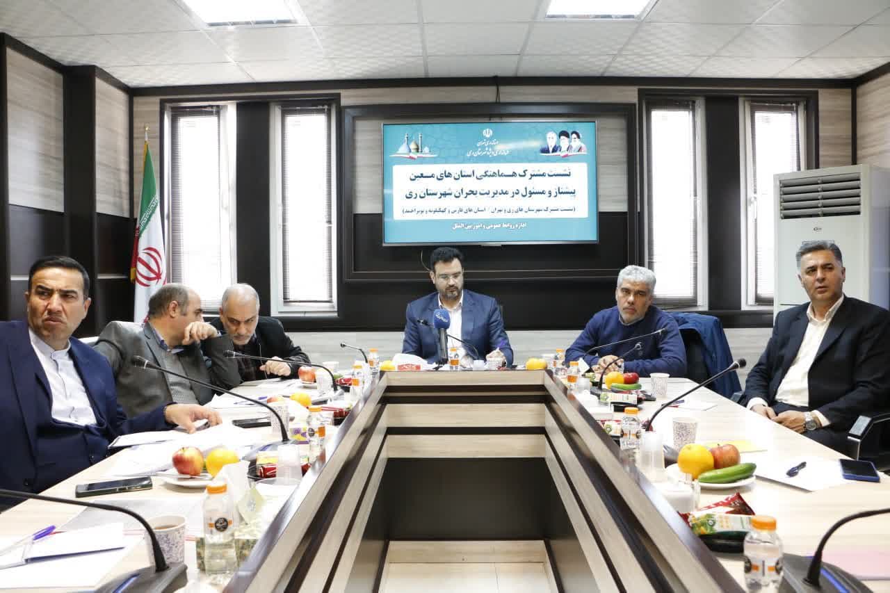 به روایت صدای فشافویه، در راستای آمادگی هرچه بیشتر دستگاه های متولی در امر مدیریت بحران و افزایش سطح هماهنگی میان استانی و شهرستانی، نشست مشترک هماهنگی استان های معین، پیشتاز و مسئول در مدیریت بحران به ریاست بیژن سلیمانپور معاون استاندار تهران و فرماندار ویژه شهرستان ری در محل سالن جلسات شهدای مدافع حرم ساختمان فرمانداری برگزار شد.