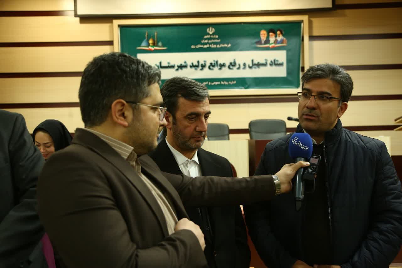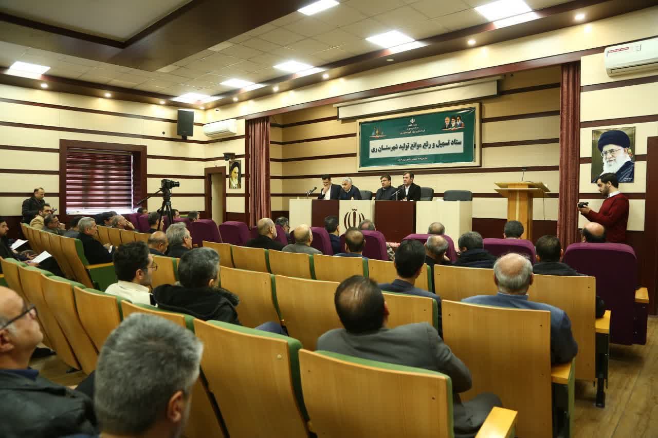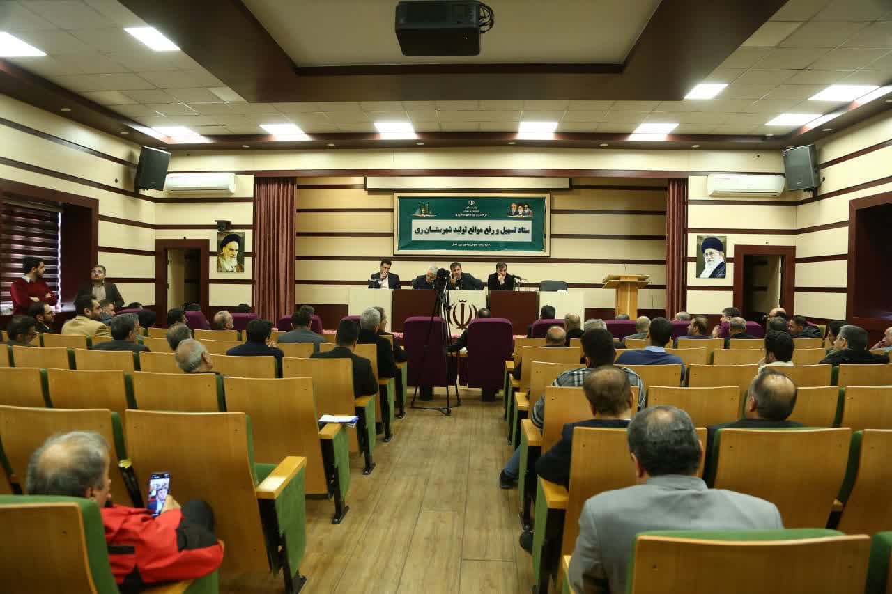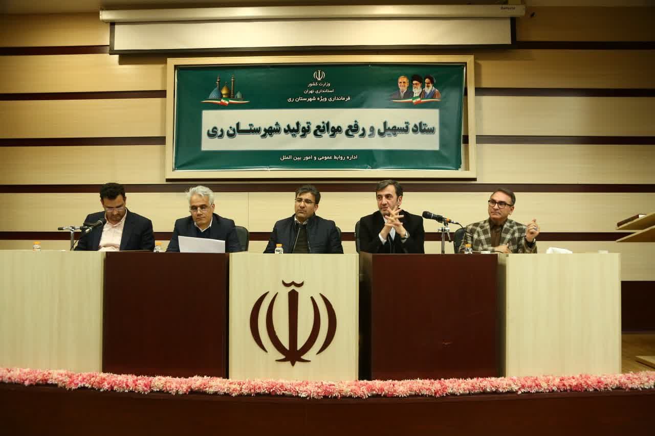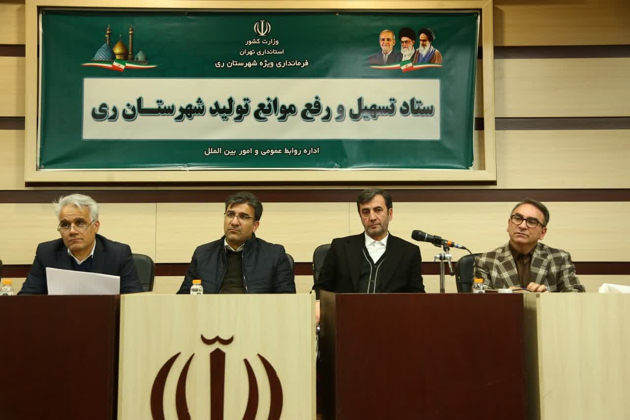 در ادامه این برنامه نشست ستاد تسهیل و رفع موانع تولید شهرستان ری به ریاست عسگری معاون هماهنگی امور اقتصادی استانداری تهران و باحضور جمعی از صنعتگران و تولیدکنندگان و مدیران کل استانی در محل تالار خدمت ساختمان فرمانداری ویژه شهرستان ری برگزار شد.