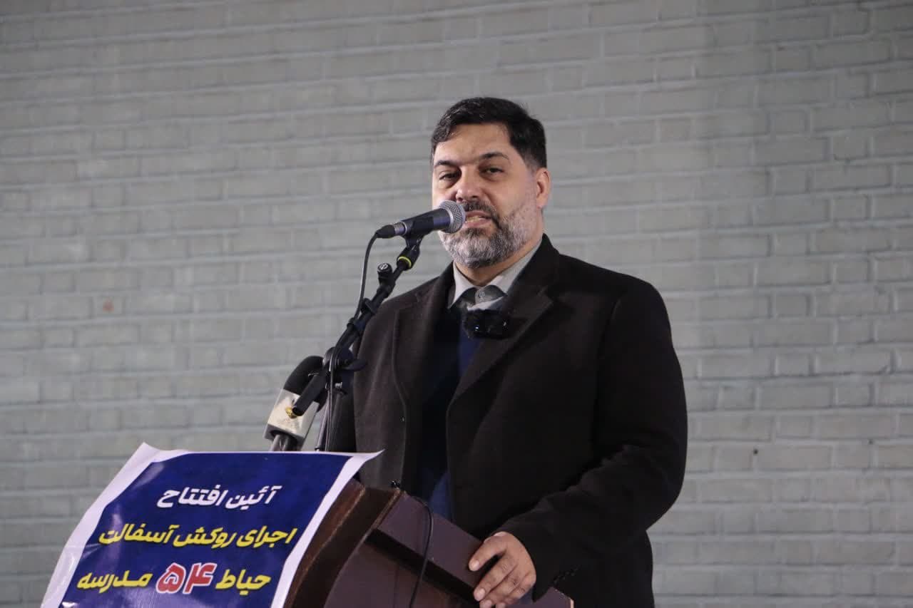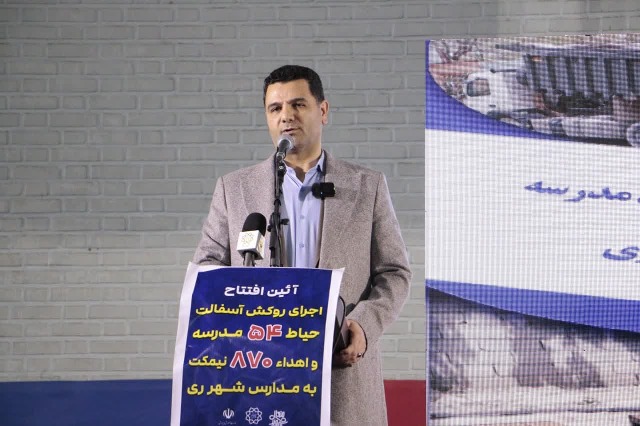 در این مراسم که باحضور نادعلی عضو شورای اسلامی شهر تهران و ری، ایمانی رئیس آموزش و پرورش ناحیه ۲ و یکتا رئیس آموزش و پرورش ناحیه ۱ ری و جمعی از معلمین و فرهنگیان برگزار شد، بصورت نمادین از طرح بهسازی و آسفالت محوطه ۵۴ باب مدرسه و نیز تحویل ۸۷۰ نیمکت کلاس درس بهرهبرداری گردید.