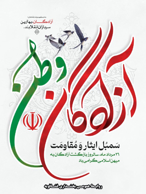 اخبار کوتاه خبر کوتاه بخش آخرین رخداد های فشافویه: آگوست 16, 2025 خبرنگار صدای فشافویه رهبر معظم انقلاب: لحظه لحظهی دوران اسارت شما، صدقه است. لحظه لحظه، صدقه است. آن لحظههای پررنجی که شما گذراندید، یک سرمایه شد. فرارسیدن ۲۶ مرادماه، سالروز بازگشت آزادگان به میهن اسلامی گرامی باد. سرمایهگذاریبرایتولیدآزادگان