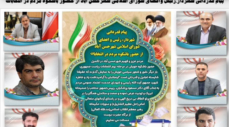 Read moreمردم عزیز و فهیم شهرحسن آباد در تکمیل حضور باشکوه خویش در مرحله دوم انتخابات ریاست جمهوری، بار دیگر ،شور و شعور سیاسی خویش را به نمایش گذارده که حقیقتا شایسته تجلیل و قدردانی است.