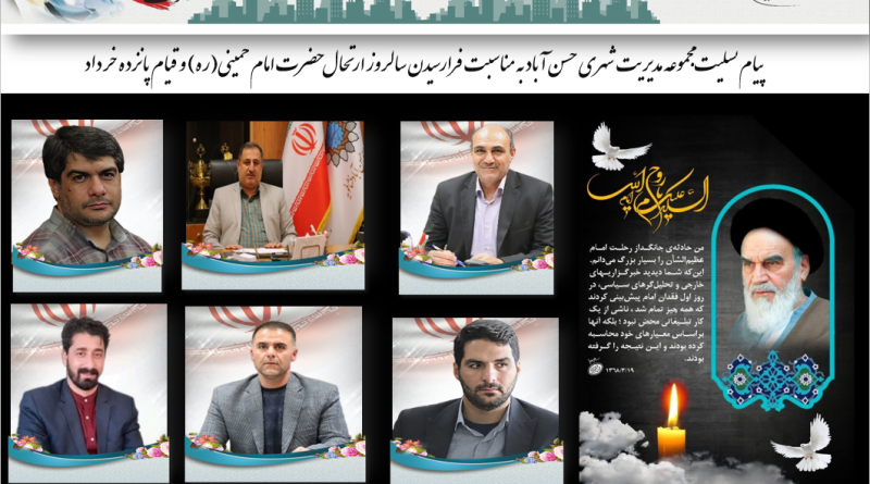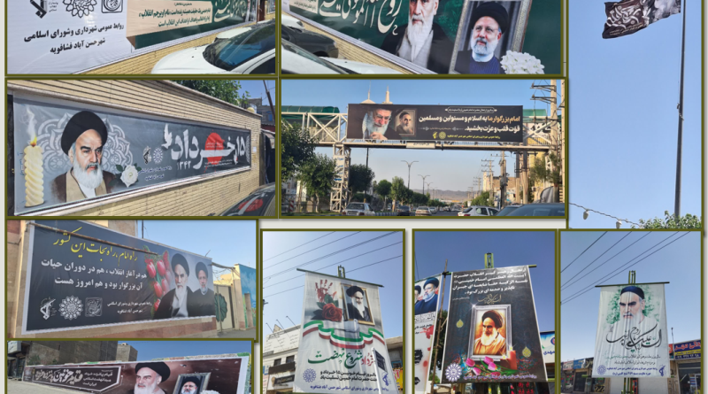 به گزارش روابط عمومی شهرداری وشورای اسلامی شهر حسن آبادفشافویه ؛با توجه به فرارسیدن ایام رحلت بنیانگزار جمهوری اسلامی ایران ، با هدف حفظ یاد وخاطره رهبر کبیر انقلاب وادامه راه آن رهبر فرزانه وهمچنین با توجه به ترددزائرین حرم امام خمینی (ره ) از استان های جنوبی کشوراز این شهر ،فضاسازی شهری با نصب پرجم های مشکی واکران بنر درنقاط مختلف شهر و مبادی ورودی انجام شد.