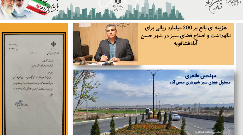Read moreمسئول فضای سبز شهرداری حسن آبادفشافویه از صرف هزینه حدود 200میلیارد ریال برای اقدامات نگه داشت و اصلاح فضای سبز شهر وکسب رتبه برتراستانی درحوزه فضای سبز درسال 1402 خبر داد.